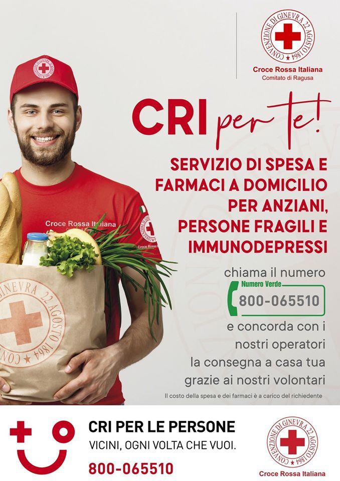 Il Sindaco di Scicli rende noto che l’assessorato ai servizi sociali, retto dal vicesindaco Caterina Riccotti, fa sapere che anche nel territorio di Scicli è attivo un servizio della Croce Rossa Italiana che assicura la consegna di spesa e farmaci a domicilio per le persone fragili, gli anziani e gli immunodepressi.