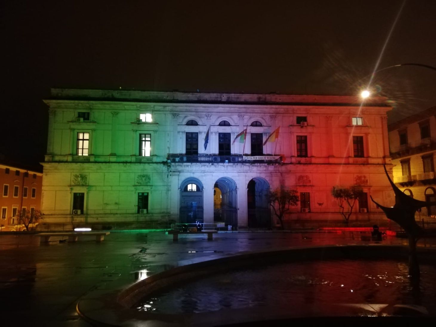 Anche il prospetto di Palazzo di Città così come quello delle principali sedi istituzionali italiane da stasera sarà illuminato con luci verde, bianca e rossa che rappresentano i colori della bandiera nazionale.