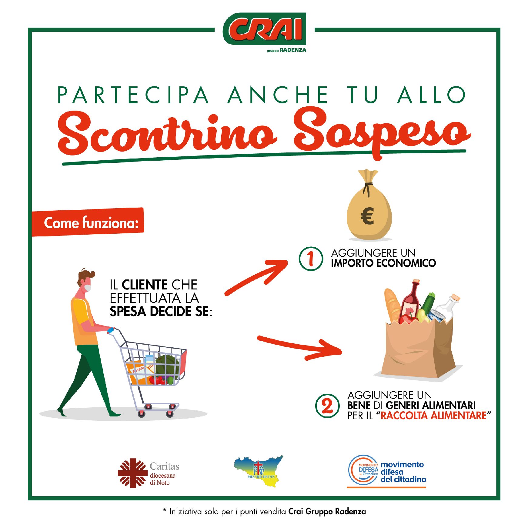 Un progetto di solidarietà che partirà in tutti i punti vendita Crai della Sicilia di proprietà del gruppo Radenza e che prevede le iniziative dello “scontrino sospeso” e della “raccolta alimentare” in stretto raccordo in questa fase inziale di test del progetto con la Caritas diocesana di Noto e di Ragusa, l’associazione Misericordie ed il Movimento difesa del cittadino di Ragusa e Catania. E’ quanto ha disposto Crai gruppo Radenza dopo un costruttivo raccordo con le realtà summenzionate. Nello specifico gli utenti che saranno stati preventivamente censiti dal Movimento Difesa del Cittadino di Ragusa e previa esibizione di autocertificazione e documento di identità, potranno recarsi nei punti vendita CRAI aderenti all’iniziativa ed effettuare la spesa di beni di prima necessità partendo dalla disponibilità delle somme raccolte attraverso le donazioni dei clienti. In alternativa la stessa procedura per effettuare la spesa sarà possibile effettuarla attraverso i canali di Caritas o Misericordie. Tutto ciò che sarà stato il frutto delle donazioni da parte di tutti i clienti Crai vedrà la partecipazione attiva del Gruppo Radenza che applicherà al carrello della spesa acquistato anche in parte con i buoni sconto, uno sconto del 10% sull’importo complessivo della spesa. Ai cittadini che si recano a fare la spesa nei punti vendita Crai è data la possibilità di donare anche beni alimentari che costituiranno una vera e propria raccolta alimentare che verrà gestita anche in questo caso in rete dalla Caritas diocesana di Noto con Misericordie. Un sentito e prezioso ringraziamento la famiglia Radenza lo rivolge a Cristian Modica, della Caritas diocesana di Noto, ad Angelo Gugliotta di Misericordie di Modica ed a Enrichetta Guerrieri ed Alessia Sudano del Movimento difesa del Cittadino di Ragusa, che con grande senso di responsabilità e collaborazione hanno permesso a Crai Gruppo Radenza di elaborare un progetto siciliano complesso ma allo stesso tempo indispensabile per sostenere l’emergenza economica che le misure di contenimento stanno facendo drammaticamente registrare in queste ore. “Oggi, sostiene all’unisono l’intera famiglia Radenza, tutti quanti noi in qualità di singoli cittadini e di imprenditori, abbiamo il grandissimo dovere civile di sostenere le famiglie che si trovano ad affrontare una gravissima crisi economica. Abbiamo il dovere morale di intervenire, ognuno con le proprie risorse e forze anche economiche di sostenere chi è in difficoltà. Le famiglie chiedono aiuti e sostegni adeguati per affrontare un dramma dalla portata così catastrofica che potrebbe tradursi a breve nella impossibilità di dare da magiare ai propri figli. Noi, nel nostro piccolo, cerchiamo di dare il nostro piccolissimo contributo”.