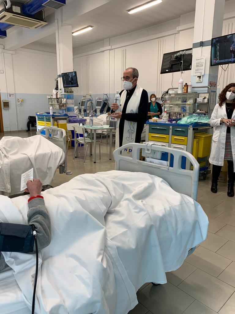 Hanno preso il via ieri le iniziative propedeutiche alla Giornata diocesana del malato che anche a Ragusa sarà celebrata giovedì 11 febbraio quando ricorre la memoria liturgica della Beata Maria Vergine di Lourdes. Il direttore dell’ufficio diocesano per la Pastorale della salute, il sacerdote Giorgio Occhipinti, accompagnato dai medici dei reparti, ha visitato e benedetto i malati di Ematologia, del day hospital oncologico e di Oncologia e dialisi dell’ospedale Maria Paternò Arezzo. Nel pomeriggio, poi, la visita è proseguita con i malati Covid del reparto di Malattie infettive dell’ospedale Giovanni Paolo II di Ragusa. Per la benedizione, don Occhipinti ha utilizzato una statuina raffigurante la madonnina del santuario di Lourdes, uguale a quella della grotta. A ogni degente, inoltre, è stata donata una immaginetta della Madonna. Oggi, alle 10, si proseguirà con la visita e la benedizione degli anziani della Rsa Covid del Paternò Arezzo. Gli appuntamenti di mercoledì 10, invece, sono i seguenti: alle 10 visita e benedizione dei malati Covid dei reparti Sub intensiva e Rianimazione; alle 11 celebrazione eucaristica e benedizione dei malati, dei medici, degli infermieri e degli operatori sanitari del reparto di Rianimazione del Giovanni Paolo II. Alle 16 si terrà la celebrazione eucaristica in streaming per i malati Covid a domicilio nella cappella dell’ospedale Civile. Giovedì 11 febbraio, giornata clou della manifestazione, si terranno i seguenti appuntamenti: alle 10 celebrazione eucaristica e benedizione dei malati con la partecipazione della Samot nel reparto Hospice del Maria Paternò Arezzo; alle 16 la celebrazione eucaristica e la benedizione dei malati animata dall’associazione di comicoterapia “Ci ridiamo su” prevista nella torre B, al piano terra, dell’ospedale Giovanni Paolo II. Durante la santa messa, sarà collocato all’interno della Torre B il simbolo della giornata diocesana del malato realizzato dal Csr di Ragusa. “Sono momenti molto significativi – sottolinea don Occhipinti – anche perché ci è capitato di muoverci in mezzo al “mostro”. Ma è questa la nostra missione. Cercare di portare un minimo di chiarore e conforto laddove la luce non c’è. Ringrazio gli operatori sanitari, l’Asp e tutti i componenti dell’ufficio diocesano per la Pastorale della salute per la collaborazione”.
