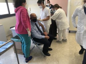 Vaccino anti covid-19 anche per la polizia locale di Modica. I componenti il Corpo, come da protocollo per gli appartenenti alle forze di polizia, hanno iniziato a presentarsi a gruppi presso il centro vaccinazioni dell’Ospedale Maggiore, accolti dal direttore sanitario, Piero Bonomo. “Attendavano questo momento – dichiara il comandante Rosario Cannizzaro – perché riteniamo importante il vaccino. Siamo una delle categorie a rischio. Siamo stati e lo siamo ancora in prima fila, a contatto giornaliero con migliaia di persone ed i rischi sono alti. Fortunatamente da un anno a questa parte abbiamo registrato un solo caso di coronavirus tra il mio personale. L’invito che possiamo fare a tutti è di vaccinarsi”. Nel gruppo odierno si sono vaccinati, tra gli altri, il comandante e i due vice, Roberto Amore e Giorgio Ruta.