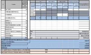 Questa la suddivisione per città: Acate (41), Chiaramonte Gulfi (1), Comiso (17), Giarratana (4), Ispica (18), Modica (16). Segue Monterosso Almo (2), Pozzallo (26), Ragusa (90), Santa Croce Camerina (39), Scicli (66) e infine Vittoria (74).