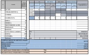 Questa la suddivisione per città: Acate (55), Chiaramonte Gulfi (1), Comiso (14), Giarratana (5), Ispica (28), Modica (21). Segue Monterosso Almo (2), Pozzallo (22), Ragusa (101), Santa Croce Camerina (50), Scicli (108) e infine Vittoria (65).