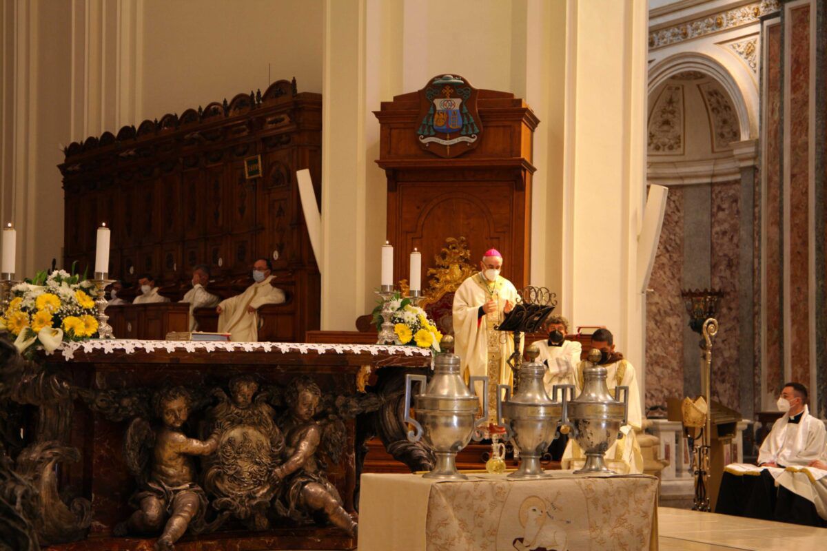 Lo scorso anno la Messa Crismale è slittata a fine maggio, a causa del lockdown imposto per contrastare la pandemia. Ieri si è potuta celebrare come da tradizione la mattina del Giovedì Santo a Noto in Cattedrale. La Messa Crismale è «la solenne liturgia, in cui si manifesta la pienezza della Chiesa Diocesana, risplendente di ministeri e carismi attorno al Vescovo», così come ha sottolineato Mons. Antonio Staglianò, all’inizio della sua omelia.