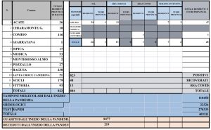 Non dà tregua la curva epidemica in provincia di Ragusa che sfiora i 900 positivi. Nelle ultime 24 ore sale leggermente il numero delle persone in isolamento domiciliare e si registra un nuovo decesso: si tratta di un 76enne, che era ricoverato al Giovanni Paolo II. Dal dato del report sugli indicatori territoriali della diffusione del Covid-19 si evince il continuo aumento dei casi a Ragusa e ma scendono leggermente a Comiso e Scicli. Quest’ultima registra 179 unità positive e nonostante si trovi in zona rossa da più di due settimane continua a mantenere numeri eccessivamente alti. Ragusa mantiene il triste primato di prima città in provincia per numero di contagi mentre a Vittoria sono in aumento i soggetti positivi, ma nel resto della provincia si registra una leggera flessione. I dati dei soggetti positivi a Scicli è di 179 (-3 rispetto a ieri), Acate 36 (-5), Chiaramonte 10 (-), Comiso 116 (-1), Giarratana 1 (-), Ispica 17 (-3), Modica 53 (-), Monterosso 2 (-), Pozzallo 27 (+2), Ragusa 238 (+15), Santa Croce 51 (-1), Vittoria 93 (+6). Le persone positive sono 884 (ieri erano 874) di cui 823 in isolamento domiciliare, 48 ricoverate e 13 nella Rsa di Ragusa.