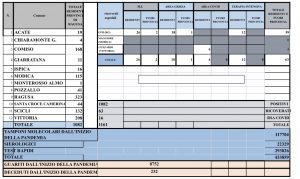I dati dei soggetti positivi a Scicli è di 132 (+8 rispetto a ieri), Acate 19 (+3), Chiaramonte 4 (-1), Comiso 168 (+6), Giarratana 11 (-), Ispica 16 (-1), Modica 115 (+2), Monterosso 1 (-), Pozzallo 41 (+5), Ragusa 323 (+12), Santa Croce 44 (+2), Vittoria 208 (+7). Le persone positive sono 1161 (ieri erano 1126) di cui 1082 in isolamento domiciliare, 63 ricoverate e 16 nella Rsa di Ragusa.
