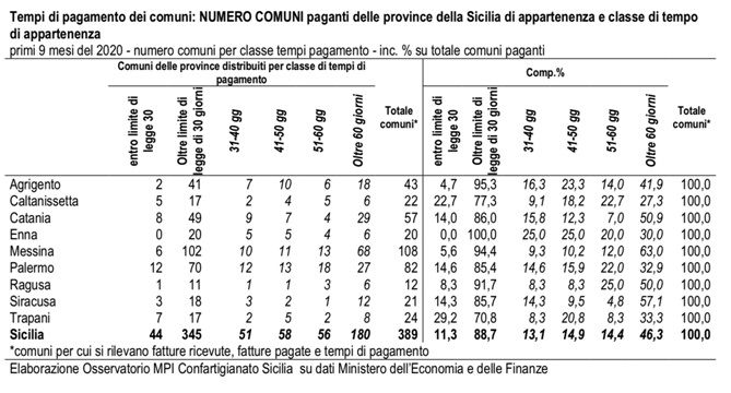 Come conferma l’indagine dell’Osservatorio di Confartigianato Sicilia, la nostra città si pone in controtendenza rispetto al dato provinciale e regionale: in un’isola dove solo il circa il 10% dei comuni (44 su 389) paga entro i 30 giorni di legge, Ragusa anticipa rispetto alla scadenza, pagando in media in 20 giorni circa: non solo una prova di efficienza e di senso di responsabilità, ma anche la migliore garanzia per tante imprese che forniscono lavori, servizi, materiali e prodotti, a beneficio di tutta la comunità.”