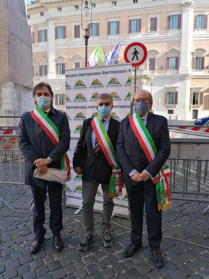 Nella foto i tre sindaci della zona Montana Iblea durante l’odierna manifestazione a Roma.