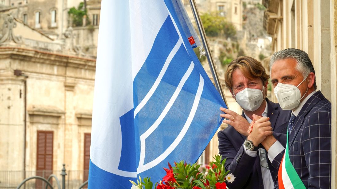 Modica. La bandiera blu sventola da Palazzo S.Domenico