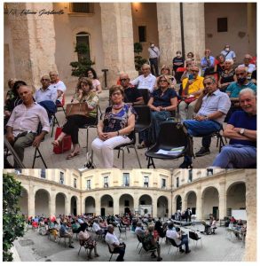 Nel corso della serata è intervenuto il regista e attore Gianni Battaglia, bravo, coinvolgente – autore, tra l’altro, del volume Il dramma sacro di Vittoria (Teatro d’Arte Sicilia 2016), che raccoglie l’esperienza sul campo di tanti anni di sacra rappresentazione a Vittoria, che lo ha visto protagonista –. Battaglia ha letto, appassionando il numeroso pubblico presente, alcune poesie di Domenico Pisana (Le lingue incespicano, Dal Paese s’alza l’urlo, Passaggio in Italia, Passaggio in Europa, Questo mare di Pozzallo, Ci stuprano le orecchie).