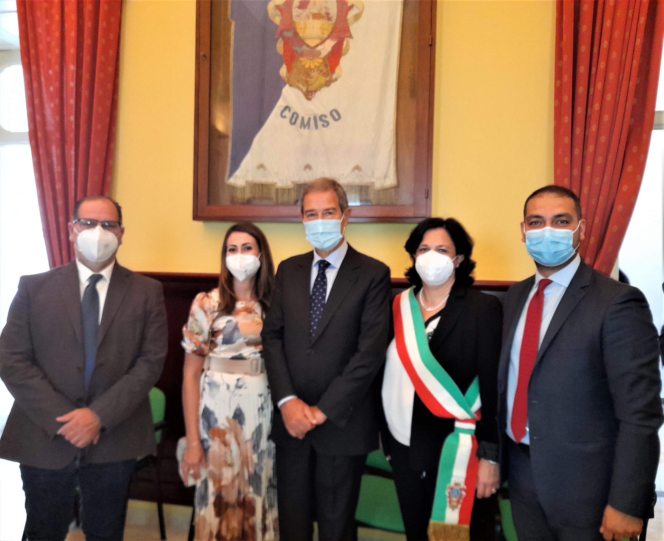 Il Presidente Musumeci dopo essersi complimentato con il Sindaco e la Giunta  per la gestione e la presenza assidua e costante sul territorio nel periodo della pandemia, ha annunciato che già dal 2022 saranno a disposizione dei comuni siciliani, ingenti somme per la realizzazione di numerosi progetti, primo tra tutti, proprio quella della mitigazione del rischio idrogeologico che vede Comiso tra i comuni a più alto rischio. “Le ci saranno – ha puntualizzato Musumeci – ma spetta ai comuni presentare progetti da ammettere a finanziamento”. Alla fine dell’incontro istituzionale, il presidente ha concluso affermando : “ l’aeroporto di Comiso ha un futuro certo poiché nel breve volgere di qualche anno, quello di Catania sarà destinato al collasso a causa dell’eccessivo flusso per il quale non era progettato. Io, il mio Governo saremo presenti come del resto lo siamo stati fino ad oggi, per operare sinergicamente con il comune di Comiso, come con tutti i comuni della Sicilia”.  All’incontro tenutosi nell’aula consiliare, sono stati presenti il Presidente del consiglio comunale, Salvatore Romano, che ha fatto per primo gli onori di casa, l’Assessore Regionale Daniela Baglieri, l’ Onorevole Giorgio Assenza, gli assessori della giunta  e i consiglieri comunali.