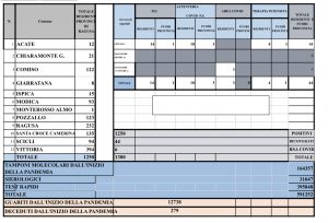 Dal report sugli indicatori territoriali della diffusione del Covid-19, le persone attualmente positive sono 1300, di cui 1250 in isolamento domiciliare, 44 ricoverate e 6 nella Rsa di Ragusa. L’aumento dei numeri preoccupa sopratutto a Vittoria, che sfiora i 400 positivi, seguita da Ragusa, Santa Croce, Pozzallo, e Comiso, dove si registra un’impennata non indifferente della curva di contagio. La situazione si aggrava anche a Scicli e Modica. Dalla scorsa settimana l’Asp di Ragusa ha riattivato in quasi tutto il territorio ibleo il servizio di screening di massa sottoponendo le persone volontariamente ai test rapidi. Intanto ieri presso l’hub di contrada Beneventano a Modica, sono stati effettuati 250 tamponi durante i quali non è stata riscontrata nessuna positività.