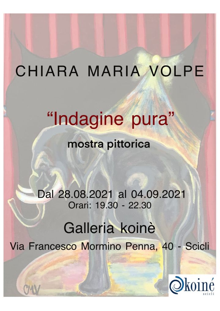 Sabato 28 agosto sarà presentata alla Galleria Koinè in via Francesco Mormina Penna a Scicli la mostra pittorica “Indagine pura”, dell’artista Chiara Maria Volpe.