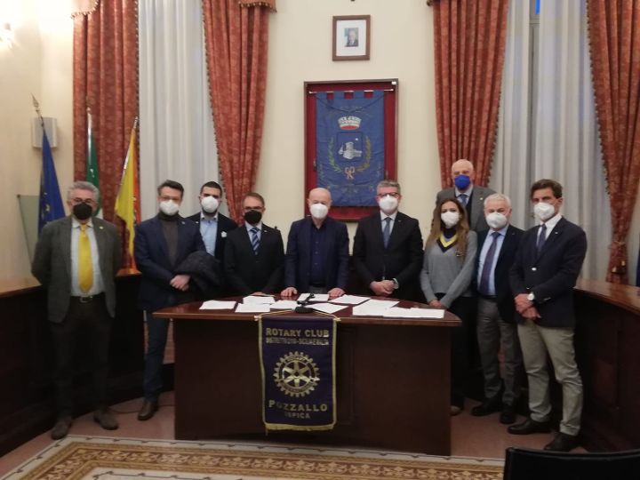 È stato firmato presso l’aula consiliare il protocollo d’intesa tra il Comune di Pozzallo nella persona del Sindaco dott. Roberto Ammatuna e i Presidenti dei Rotary Clubs dell’Area Iblea (Comiso, Modica, Pozzallo-Ispica, Ragusa, Ragusa Ibla H., Scicli e Vittoria), rispettivamente Fabrizio Comisi, Giovanni Adamo, Giorgio Pisana, Giuseppe Antoci, Calogero Ugo Strazzeri, Lucia di Paola, Giuseppe Antonio Tommasi, e i Presidenti del Rotaract Clubs di Modica, Pozzallo-Ispica e Ragusa, Roberto Leone, Michela Canto e Giuseppe Caruso, per l’attuazione del progetto distrettuale “un albero per ogni rotariano”. L’iniziativa rotariana consiste nella realizzazione di un polmone verde, con la messa a dimora di specie arboree, nel cuore della Città di Pozzallo sul Lungomare Raganzino. Il progetto voluto dal Governatore del Distretto 2110 Sicilia e Malta, Gaetano De Bernardis, ha l’obiettivo di promuovere e tutelare la salvaguardia dell’ambiente e della biodiversità ed è stato proposto dal presidente del Rotary Club Pozzallo Ispica al Sindaco e all’Amministrazione Comunale di Pozzallo che lo ha accolto favorevolmente e ne ha condiviso la valenza sociale e ambientale. L’area sarà fruibile ai cittadini e ai visitatori a conclusione dei lavori di restauro attualmente in corso sul Lungomare Raganzino.