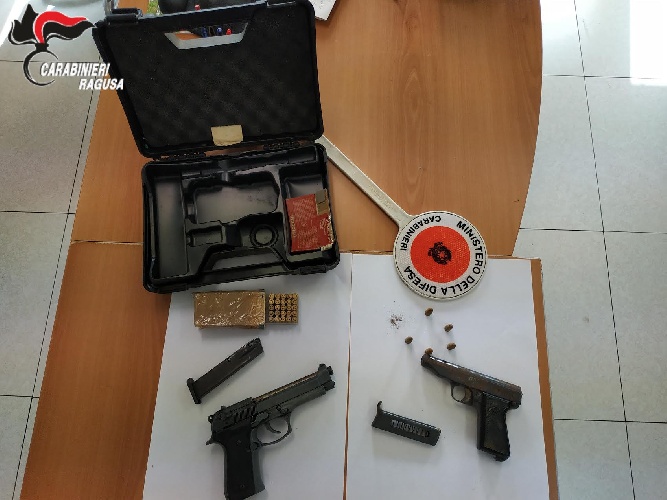 Un 37enne sciclitano è stato arrestato Dai Carabinieri della Compagnia di Modica, coadiuvati da unità cinofile. L’operaio, coniugato, incensurato, sottoposto a perquisizione personale e domiciliare, è stato trovato in possesso di due pistole calibro 7,65 e 25 colpi dell’identificazione calibro, tutto sottoposto a sequestro. Entrambe le armi risultavano senza matricola. Una delle pistole, inoltre, era inizialmente un’arma giocattolo, successivamente modificata tanto da risultare funzionante e, di fatto, identica ad un’arma da fuoco vera e propria. Il soggetto tratto in arresto per detenzione di armi clandestine e munizionamento è stato poi tradotto, come disposto dalla competente dalla Procura di Ragusa, presso la casa circondariale di Gela. A seguito della convalida dell’arresto, il Gip ha confermato la misura cautelare della custodia in carcere.