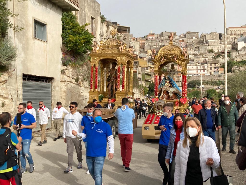 Giornata storica per la chiesa monterossana che domani ,domenica 8 maggio, “Festa degli Angeli” vedrà i due simulacri dei Santi Patroni Maria Santissima Addolorata e San Giovanni Battista in processione per le vie cittadine in contemporanea. L’importante avvenimento si era ripetuto , con la presenza di centinaia di fedeli di ogni età in particolare tanti bambini e ragazzi, il 24 aprile scorso in occasione della festa “ Domenica in Albis”. A piazza Sant’Antonio domani a mezzogiorno dopo la solenne celebrazioni eucaristica presieduta dall’arciprete Giuseppe Antoci si snoderà per le vie cittadine la particolare ed imponente processione che vedrà i due Simulacri dei Santi Patroni uscire contemporaneamente seguiti dalla banda musicale diretta dal maestro Umberto Terranova. Da via Vittorio Emanuele a piazza San Giovanni e lungo il corso Umberto si raggiungerà il Cimitero . Qui l’arciprete Antoci farà una breve riflessione cui seguirà la benedizione dei fedeli defunti. I due Simulacri subito dopo rientreranno nella chiesa di San Giovanni Battista. Alle 19,30 dopo la solenne celebrazione eucaristica si svolgerà la salita del Simulacro del Patrono San Giovanni sull’altare. Seguirà la processione della patrona Maria Santissima Addolorata per alcune vie cittadine fino al Santuario, dove il Simulacro verrà riposto sull’altare.