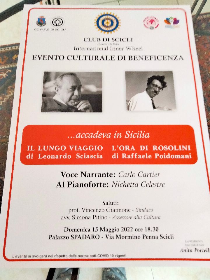 domenica 15 Maggio ha avuto luogo un reading dell’attore Carlo Cartier per il club Inner Wheel di Scicli. Dopo la presentazione della presidente Anita Monaco Portelli e il saluto dell’assessore alla cultura Simona Pitino, l’attore ha letto con magistrale interpretazione, due racconti brevi di Leonardo Sciascia, ” Il lungo viaggio”, e di Raffaele Poidomani, “L’ora di Rosolini.”