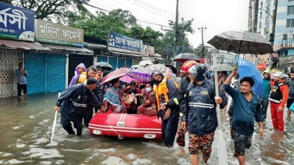 Un vero disastro umanitario stanno provocando le piogge monsoniche in corso nel Bangladesh. Tutti i principali fiumi, inclusi Brahmaputra-Jamuna, Ganga-Padma, Surma, Kushiyara, Teesta, Dharla e Dudhkumar, continueranno a innalzare il livello dell’acqua nelle prossime 48 ore. Una situazione di per sé catastrofica che potrebbe peggiorare nei distretti di Sylhet, Sunamganj e Netrokona a nord-est. Sei milioni di persone colpite sono rimaste isolate nelle loro case, quasi completamente allagate, costrette a cercare rifugio altrove, poiché il livello delle acque dei fiumi a nord e nord-est continua a salire velocemente. Molte persone hanno cercato riparo sui tetti e aspettano di essere soccorse dalle barche che stanno raggiungendo le vaste aree regionali colpite. In due dei quattro principali bacini fluviali del Paese, l’acqua ha superato i livelli di guardia, secondo il rapporto del portavoce del Flood Forecasting and Warning Center, Arifuzzaman Bhuyan. La situazione si prevede in peggioramento, poiché le forti piogge continueranno nei prossimi giorni, sia nelle regioni indiane di Meghalaya e Assam, a monte, sia nelle aree himalayane, nel Bengala occidentale dell’India. Diverse centrali elettriche colpite dalle inondazioni sono state chiuse, con conseguenze anche per la fornitura di energia, le comunicazioni mobili e internet. Le truppe dell’esercito del Bangladesh stanno assistendo la protezione civile nell’evacuazione e nel soccorso delle persone, insieme alle unità della Marina e dell’Aeronautica. Il capo generale dell’esercito Safiuddin Ahmed è partito per Sylhet per controllare e coordinare il lavoro dei militari nella gestione della disastrosa calamità.