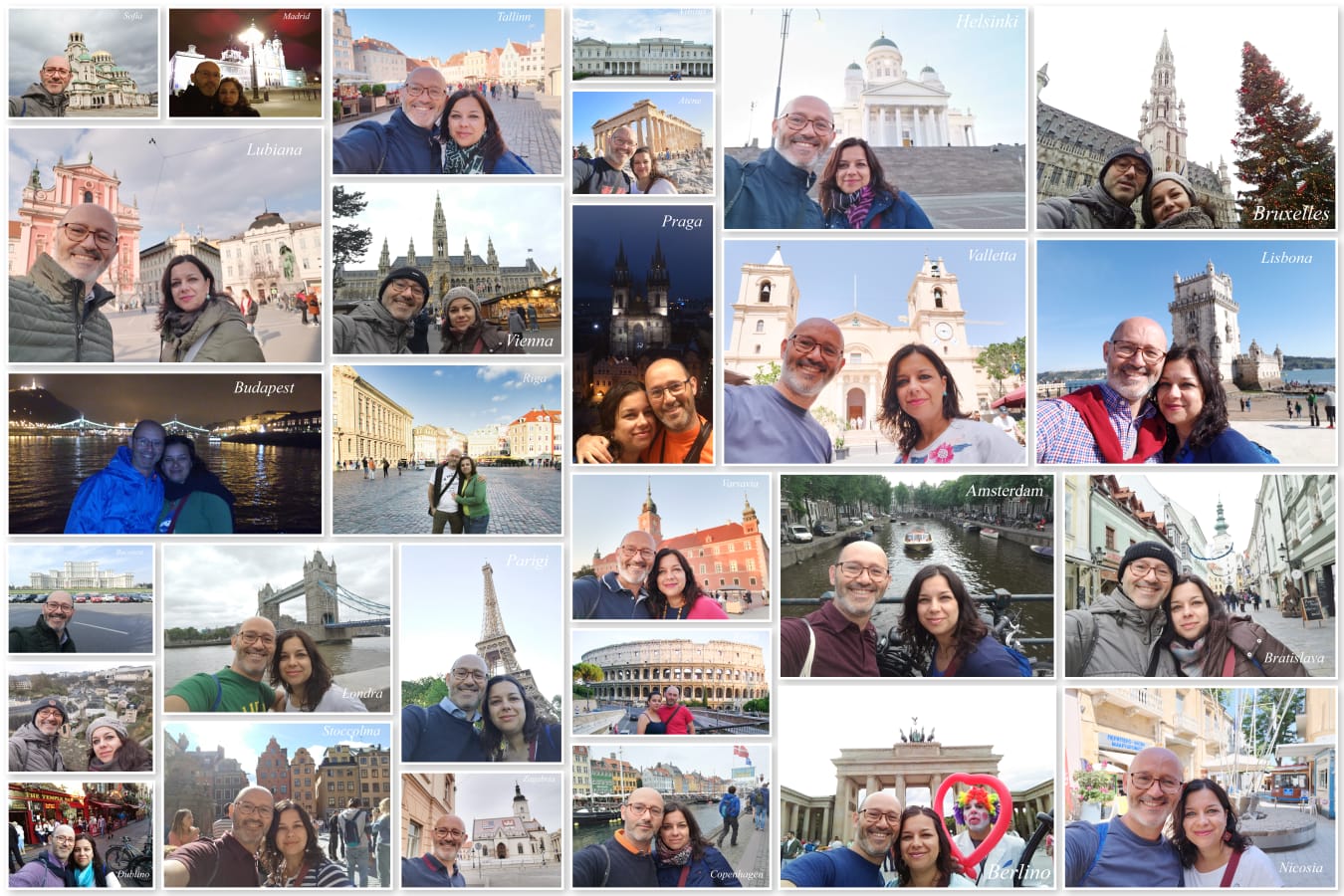 Potrebbe essere benissimo uno spot di propaganda degli ideali di Europa Unita l’impresa portata recentemente a termine da Giorgio Sterlino e Loredana Puglisi. Ovvero visitare tutte le capitali degli Stati membri dell’Unione Europea (oltre a tantissime altre località del Vecchio Continente) in un arco temporale ristretto. Un lunghissimo viaggio lungo 9 anni sconfiggendo pandemie, ritardi, cancellazioni e tutti quei brividi ed imprevisti che hanno portato un grande come Paulo Coelho a dire che il viaggio non è mai una questione di soldi, ma di coraggio. E di coraggio la coppia modicana, nella vita quotidiana e in quella da novelli Marco Polo, ne hanno avuto tantissimo. Lui europeista convinto, innamorato follemente del Vecchio Continente, lei desiderosa di vedere sempre cose nuove e scoprire ciò che c’è oltre, hanno cominciato quasi per caso quella che col tempo è diventata una vera e propria sfida personale. “Il primo viaggio in assoluto è stato a Roma, nel 2013. La visita della Città Eterna ci ha affascinato così tanto che non eravamo ancora tornati e già progettavamo il viaggio successivo. Ma ancora eravamo ben lontani dal pensare che quella era diventata la prima tappa del nostro lungo tour”. Infatti dopo Roma, i coniugi Sterlino cominciano a macinare km e a fare collezione di calamite e selfie davanti ai monumenti più famosi. Dalle classiche Parigi, Berlino, Dublino, Madrid e Londra alle più esotiche Zagabria, Vlinius, Riga e Tallin. Passando per Lubiana, Helsinki, Varsavia, Stoccolma, Copenaghen, Bruxelles, Lisbona, Budapest, Bucarest, Bratislava, Praga, Amsterdam, Sofia. Non tralasciando le mete più piccole come Lussemburgo, Valletta e Nicosia. “Proprio dalla Città cipriota di Larnaca abbiamo provato una esperienza particolare. Ovvero cenare a Cipro e fare colazione in Polonia visto che subito dopo aver cenato nella bellissima isola al centro del Mediterraneo abbiamo preso un aereo che ci ha portato a Katowice. Sono piccole cose come queste che ci hanno fatto innamorare sempre di più del viaggio in se stesso. “Riteniamo non possano mai farsi classifiche assolute (riguardo ad ogni ambito), la nostra “fortuna” è saperci emozionare in ogni città, in ogni luogo nuovo, ognuno per le sue caratteristiche. Detto questo, tra le città viste, a parte ovviamente Parigi e Londra, ricordiamo Tallinn (il più bel centro storico medievale che abbiamo visto), Praga (fiabesca, sorprende ad ogni angolo, per ogni per palazzo) e Stoccolma (bellezza ed eleganza, la signora del nord).Ma come non ricordare anche Edimburgo e Amsterdam? O Vienna e Budapest? Lisbona? E la meravigliosa Polonia?”. Nonostante i due anni forzati di stop causa Covid a queste mete si sono aggiunte altre Città come Oslo, Edimburgo,Strasburgo, Danzica, Cracovia, Siviglia solo per citarne alcune. Normale adesso chiedersi quale sarà la prossima fermata: “Usciamo dalla Comunità europea, Si va alla conquista dell’Impero Romano d’Oriente visto che abbiamo già i biglietti per Istanbul”. Anche se il sogno è un altro Impero, quello del Sol Levante. “Il Giappone ci ha affascinato sempre e stiamo prendendo in seria considerazione l’ipotesi. Diciamo che è in ballottaggio con un altro grande Paese, gli Stati Uniti d’America”.