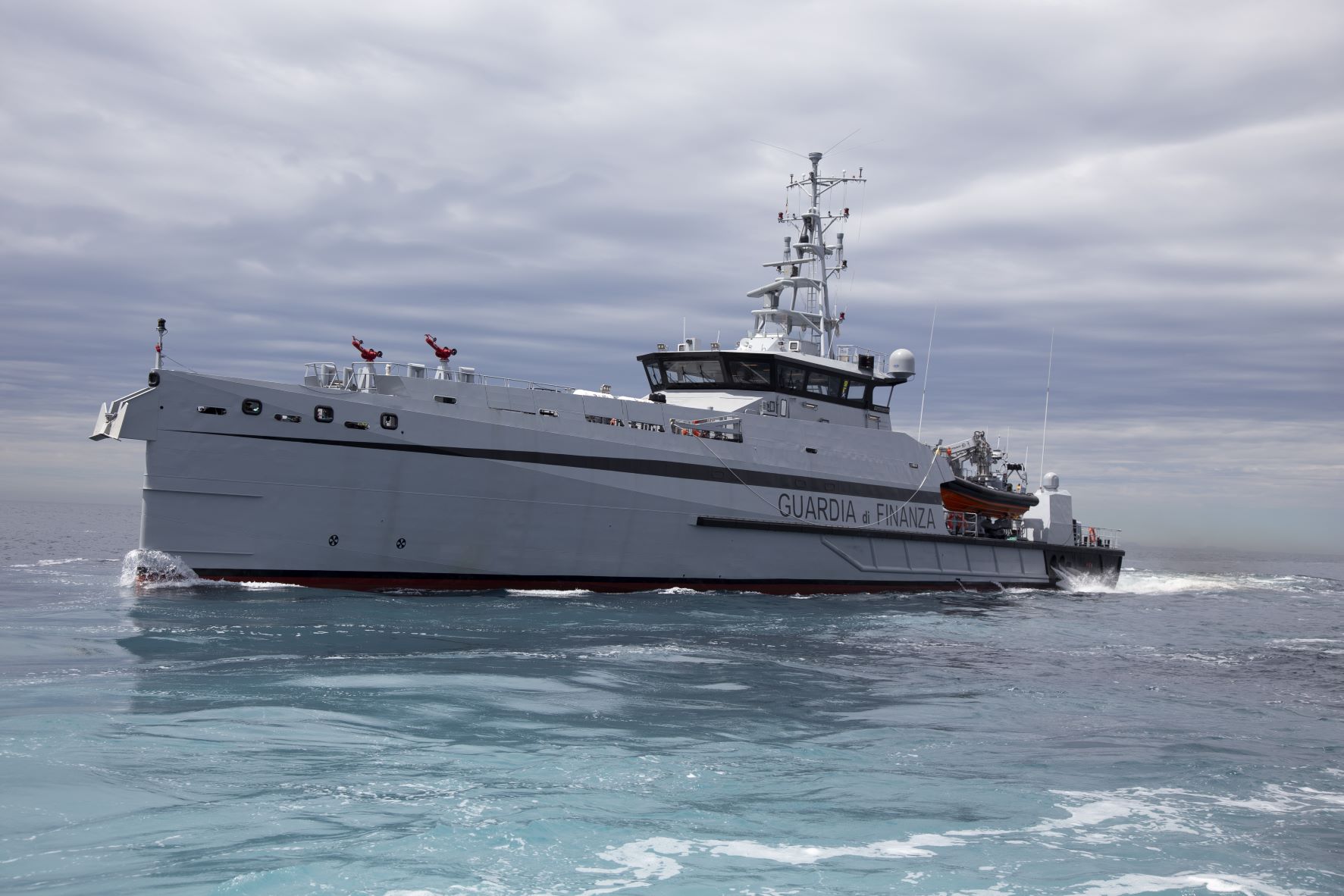 Realizzato dal Cantiere Navale Vittoria in collaborazione con Damen Shipyards Group, il nuovo OPV della Guardia di Finanza è lungo oltre 60 metri, largo 9,5 metri, ha un pescaggio di 3,5 metri ed è in grado di raggiungere una velocità massima superiore a 26 nodi. Possiede la prua ad ascia o Axe Bow in grado di garantire un’ottima tenuta al mare anche in condizioni meteo-marine difficili, senza dover limitare la velocità. L’unità si caratterizza per l’introduzione di una propulsione diesel-elettrica alle andature di pattugliamento fino a 9 nodi che le consente di essere un mezzo a basse emissioni e a ridotto impatto ambientale. Ai due motori diesel principali di propulsione sono affiancati motori elettrici reversibili da 270 kw ciascuno che possono fungere da motori di propulsione in pattugliamento o fornire energia elettrica alle altre andature. A bordo l’imbarcazione può ospitare fino a 30 persone di equipaggio a cui si potranno aggiungere ulteriori 8 per il personale Frontex. Al termine della costruzione, l’unità otterrà la più alta classe prevista dal Registro Navale Italiano e le notazioni Efficient Ship Eedi (Energy Efficiency Design Index – Indice di efficienza energetica nella progettazione), notazione addizionale di classe dedicata all’efficienza energetica delle navi, Green Plus e Green Passport Plus legata all’impatto ambientale, tutte rilasciate dal RINA.