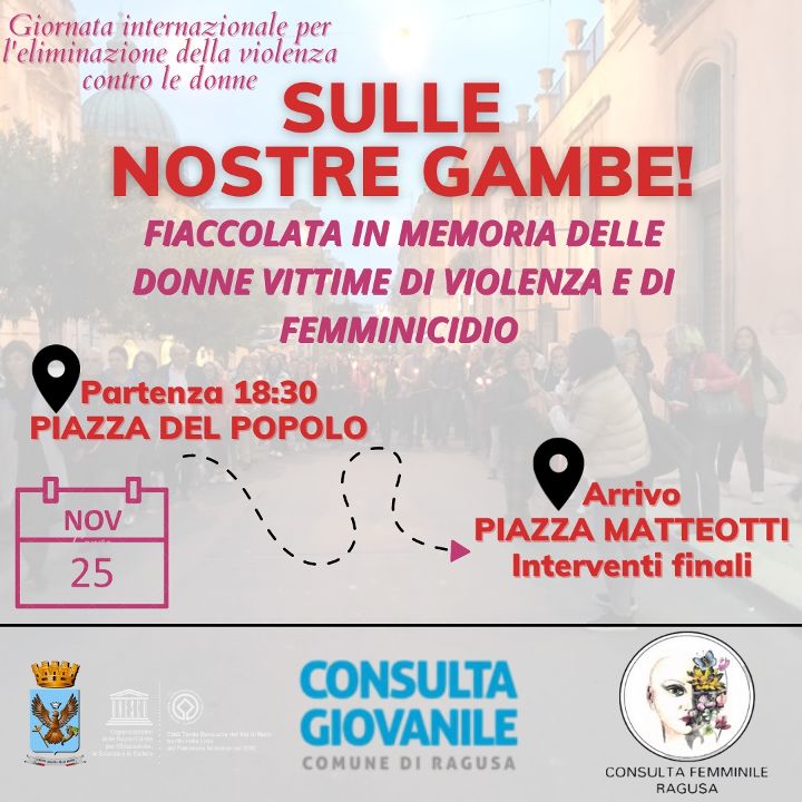 La Consulta Giovanile e la Consulta Femminile di Ragusa hanno promosso e organizzato una fiaccolata in memoria delle donne vittime di violenza e femminicidio, in occasione della Giornata internazionale per l’eliminazione della violenza contro le donne.