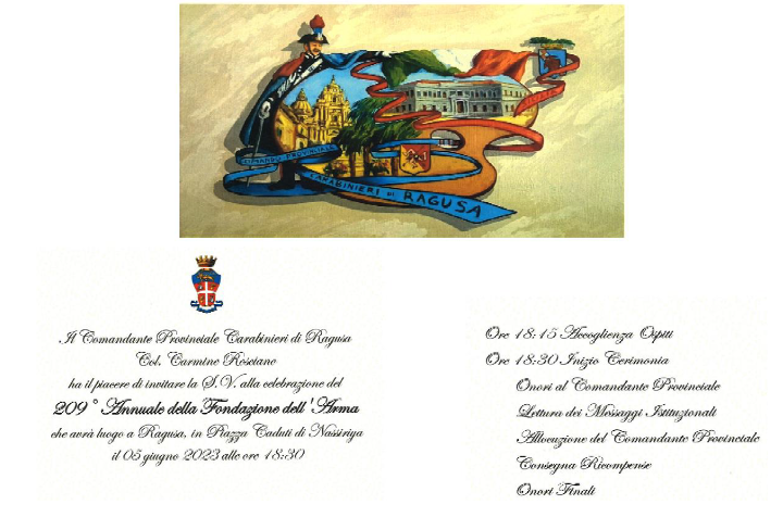 Il Comandante Provinciale, Col. Carmine Rosciano, ripercorrerà i momenti salienti dell’ultimo anno che ha visto i Carabinieri Iblei impegnati sulle principali emergenze che hanno interessato il territorio.