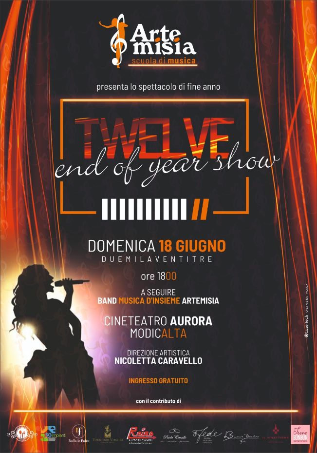 L’associazione culturale Artemisia di Modica presenta “Twelve” lo spettacolo di fine anno accademico che vede protagonisti gli allievi della scuola di musica. La prima parte vedrà le esibizioni singole degli strumentisti e dei cantanti preparati dai maestri Giovanni Celestre, Riccardo Drago, Gabriele Giummarra, Sergio Spadola e dalla vocal coach Nicoletta Caravello. La seconda parte vedrà sul palcoscenico la band di musica d’insieme degli allievi Emanuela Fede, Francesca Di Tommasi, Gabriele Di Tommasi, Mario Leonti, Anna Poidomani, Andrea Milana, Eleonora Blanco, Martina Fidone, Clara Rustico, Giorgia Pisana, Luca Calvo, Alberto Lucifora, Stefano Mavilla, Dario Sudano, Francesco Stracquadanio. Lo spettacolo sarà al Cineteatro Aurora di Modica dalle ore 18,00 con ingresso libero.
