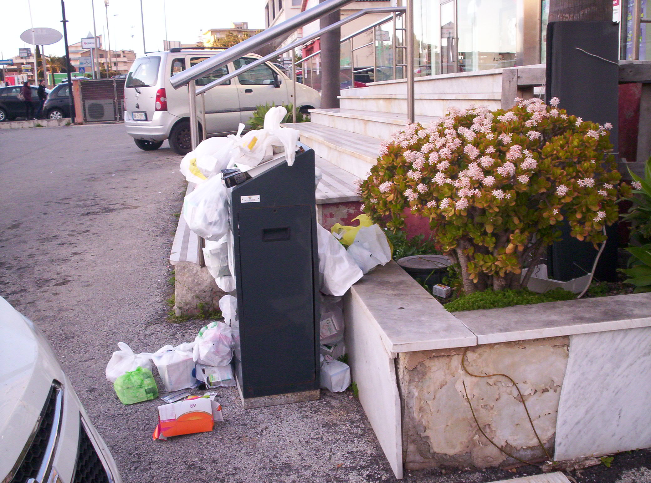 E’ interessante la sua precisazione sui soggetti del contratto interessati, comunque Ilenia, aggiungo che il contenitore dei rifiuti si trova in una area privata o pubblica? A sembrerebbe una area privata con parcheggio ad uso pubblico da parte dei clienti della farmacia e dei negozi vicini.