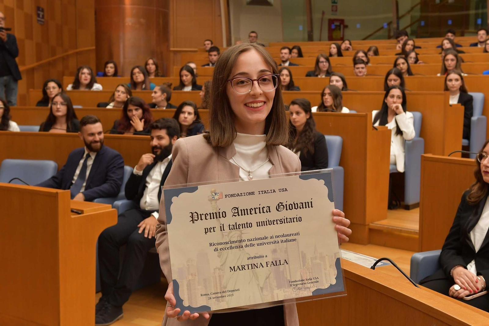 La giovane sciclitana Martina Falla, è tra i vincitori del premio “America Giovani” per il talento universitarioriconoscimento nazionale che viene attribuito dalla Fondazione Italia-USA,  ai più talentuosi giovani neolaureati che si sono distinti per un percorso universitario di eccellenza delle Università italiane. Autorevole risultato per la giovane di Scicli – Martina Falla, che ha conseguito lo scorso aprile, la laurea triennale in Lingua cultura e società dell’Asia e dell’Africa Mediterranea, presso l’Università ‘Ca’ Foscari’ di Venezia.