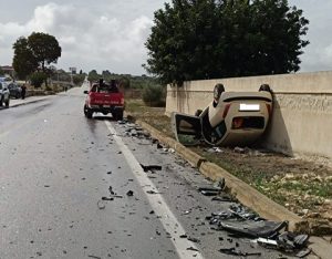 Tre autovetture coinvolte, di cui una cappotta, in un incidente stradale che ha provocato tre feriti. Protagoniste del sinistro, avvenuto sulla SP 42 Scicli-Modica, una Maserati, una Ford Focus e una Lancia Ypsilon, finita quest’ultima fuoristrada prima di ribaltarsi.