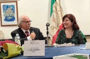 Domenico Pisana, Presidente del Caffè Quasimodo, si è intrattenuto in una conversazione con l’autrice, una donna di ampia cultura , appassionata di poesia, di letteratura italiana e straniera, dei classici, di saggistica, di ricerca nell’ambito storico-archeologico e letterario, dell’arte, la musica, la natura e la sua difesa. Queste passioni, come lei stessa ha fatto notare nel suo intervento, cerca di trasmettere a studentesse e studenti nella consapevolezza del grande dono della vita.