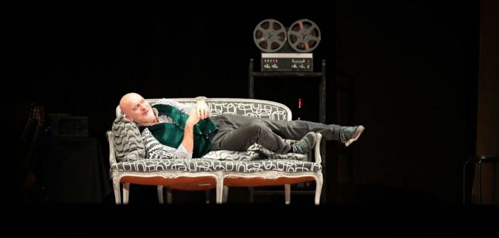 L’attore si muove sulla scena costituita da un cumulo di libri, da un divano e da piccoli schermi televisivi che vengono messi in funzione quando è rammentata la sigla della “Canzonissima” del 1969 dove le Gemelle Kessler cantavano “Quelli belli come noi” che suscitavano i primi sogni erotici adolescenziali. Era anche il periodo in cui lui, in contrasto con suo padre che lo prendeva in giro, si sentiva comunista più perché innamorato di una ragazza marxista che per credo politico. D’altra parte, quelli erano anche gli anni ribelli del ’68 che creavano dissapori tra figli e genitori. Alle sue spalle, a fare da contrappunto alle sue