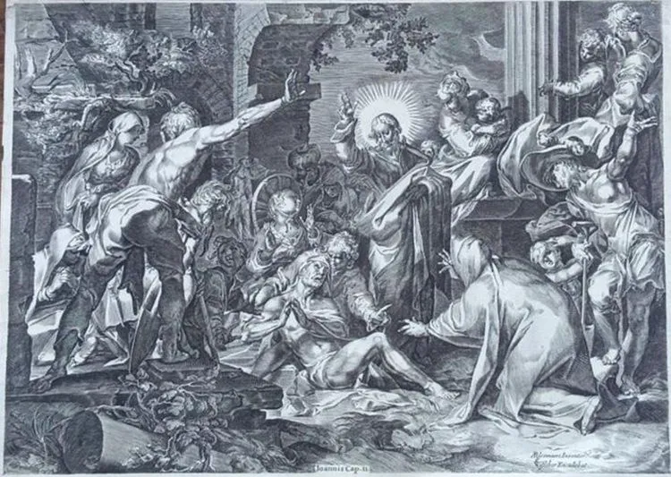 Ennesima acquisizione del Gran Baliato che arrichisce il proprio tesoro con “La Resurrezione di Lazzaro”, un’acquaforte e bulino del XVII secolo, di Abraham Bloemaert, realizzata dall’incisore Claez Janszoon Visscher. La prima opera riconosciuta di Abraham Bloemaert è la Niobe del 1591 a cui seguì la Predica di Giovanni Battista ed il Battesimo di Cristo del 1595. Nel 1595 entrò a far parte della Gilda di San Luca, per la quale ricoprì la carica di presidente nel 1618. Insieme a Paulus Moreelse fondò un’accademia artistica nel 1612. Bloemaert fu un cattolico praticante ed ebbe numerosi contatti con il mondo intellettuale. Tra i suoi amici possiamo menzionare lo scrittore e disegnatore Aernout van Buchel. Lo studio di Bloemaerts fu visitato nel 1626 da Elizabeth Stuart, regina di Boemia, e l’anno seguente da Rubens. Claes Janszoon Visscher, detto anche Nicolas Janszoon Visscher o Nicolaum Johannis Pescatorem è stato un editore, incisore, disegnatore e cartografo olandese del secolo d’oro. Nel 1605 lavorò come incisore per l’editore di Amsterdam Willem Jansz. Molto presto iniziò a pubblicare stampe di propria fattura, caratterizzate dal logo detto La firma del Pescatore, riferimento al suo nome, sia da artisti olandesi contemporanei che non. Immagazzinò, inoltre, stampe, acquisendo su larga scala lastre di rame da altri editori e stampatori, non solo prodotte da artisti viventi, ma anche vecchie tavole da Maarten van Heemskerck e altri noti pittori, prodotte da Hieronymus Cock e dai suoi successori. Contribuì, in questo modo, a costituire una delle più importanti case editrici dell’epoca. Rappresentò soggetti religiosi, paesaggi, in particolare invernali, e architetture, e realizzò stampe di devozione. Realizzò stampe da disegni di artisti come David Vinckboons e mappe. Nonostante la più importante pubblicazione dell’epoca, la Bibbia, nella versione autorizzata nei Paesi Bassi protestanti, fosse senza illustrazioni, Visscher, come pure altri editori dell’epoca, realizzarono stampe, che, inizialmente separate dal testo religioso, vi furono in seguito incorporate.