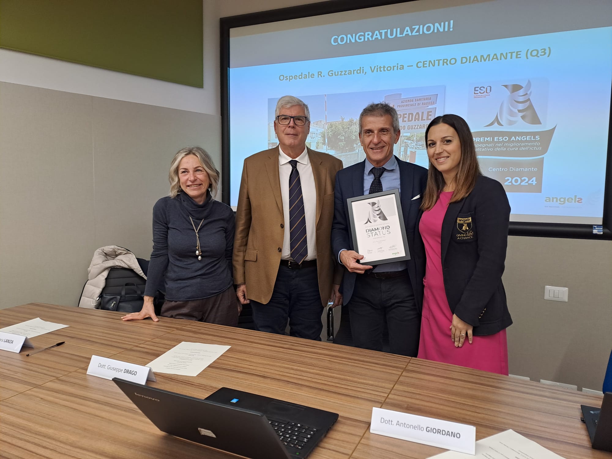 “Questo traguardo è la testimonianza di un percorso virtuoso, che l’Azienda, grazie a professionisti eccellenti, è riuscita a concretizzare in vari ambiti. Con un solo obiettivo: produrre risultati a beneficio dei pazienti”. Lo ha detto il Direttore generale dell’ASP di Ragusa, Giuseppe Drago, che questa mattina ha partecipato alla consegna del Premio Angels nei confronti della Stroke Unit diretta da Antonello Giordano. Erano presenti il Direttore sanitario, Sara Lanza, e la responsabile Angels per il Sud Italia, Stefania Fiorillo.