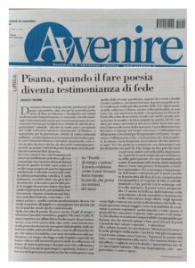 E, nella fattispecie, va subito detto che gli si deve riconoscere, a lui come a pochi altri poeti, il coraggio di non nascondere il proprio credo e la propria fede, pur andando controcorrente rispetto al mainstream laicista, e sottolineo laicista, e non laico – e Pisana è un laico -, quella corrente predominante, dicevo, che tende a mettere all’angolo e a emarginare una poesia che sia in qualche modo anche confessionale.