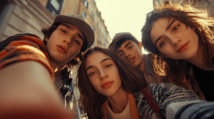 Il selfie diventa terreno di scontro generazionale. I Millennials prediligono inquadrature dall’alto con focus sul viso, mentre la Gen Z sperimenta con nuovi linguaggi visivi: 0.5 selfie grandangolari e obiettivi fisheye che creano prospettive emisferiche a 180 gradi, ridefinendo completamente il concetto di autoritratto digitale.