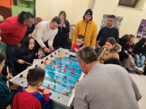 Il torneo di calcio balilla “Padre e Figli” si è concluso mercoledì sera, 19 marzo, nei locali dell’Oratorio Sala Chiara Luce, con grande successo. L’evento, organizzato in occasione dei solenni festeggiamenti in onore del Patriarca San Giuseppe, ha visto la partecipazione di numerosi papà accompagnati dai loro figli, in una tre giorni di sfide appassionanti e divertenti.