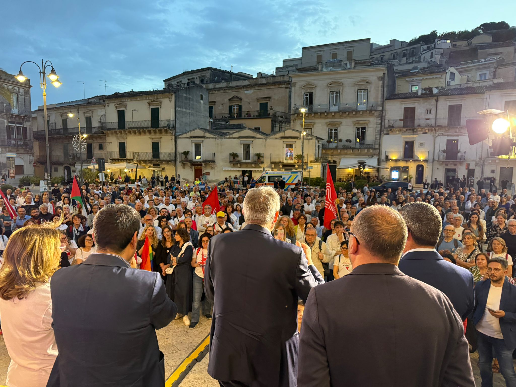 Modica – Una piazza Matteotti gremita come per le grandi occasioni e partecipe ha accolto ieri sera, il Segretario Generale della CGIL Maurizio Landini, intervenuto per sostenere la campagna referendaria promossa dal sindacato in vista del voto dell’8 e 9 giugno. Ad accoglierlo, tra gli altri, il Segretario regionale CGIL Mannino ed il segretario provinciale, Giuseppe Roccuzzo e Ignazio Giudice, Segretario d’Organizzazione Cgil Sicilia. L’intervento, di Landini, vibrante e ricco di passione civile, si è concentrato sul valore democratico del referendum, strumento attraverso cui il popolo può esercitare la propria sovranità in modo diretto, superando la disaffezione crescente verso la rappresentanza politica tradizionale. “Non si vota per un partito, non si vota per me, si vota per i propri diritti, per i figli, per il futuro del lavoro e della democrazia”, ha affermato Landini. “Votare significa ridare voce a milioni di persone che oggi si sentono escluse, precarie, sfruttate”. Durante il comizio, il Segretario ha denunciato l’eccessiva concentrazione del potere legislativo in mano all’attuale maggioranza parlamentare, ricordando che nessuno oggi può dirsi rappresentativo della maggioranza effettiva del Paese, data la crescente astensione. “Chi ha vinto governa legittimamente – ha detto – ma non può usare la propria forza per stravolgere unilateralmente la Costituzione.” Tra i punti salienti del suo discorso, Landini ha ricordato i quattro quesiti referendari in materia di lavoro: dalla reintroduzione dell’articolo 18 contro i licenziamenti ingiusti, alla revisione delle norme sugli appalti e subappalti, passando per la restituzione della piena funzione al giudice in caso di licenziamento illegittimo nei piccoli contesti aziendali, fino alla limitazione dell’uso strutturale dei contratti a termine. “Questi referendum – ha sottolineato – non chiedono privilegi, ma diritti universali. Vogliono rimettere al centro la persona, la dignità del lavoro, la giustizia sociale.” Ampio spazio è stato riservato alla critica dell’attuale modello economico e fiscale, che premia la rendita e penalizza il lavoro. Il segretario ha evidenziato, dati alla mano, che il carico fiscale grava in modo sproporzionato su lavoratori dipendenti e pensionati, mentre i grandi profitti spesso sfuggono a una reale redistribuzione. “Non è accettabile – ha detto – che chi lavora paghi più tasse di chi vive di rendita.” Nel suo intervento, Landini ha richiamato la memoria delle lotte sociali degli anni ’60 e ’70, sottolineando come conquiste come lo Statuto dei Lavoratori e il Servizio Sanitario Nazionale siano frutto di impegno collettivo, non di concessioni. “I diritti non ci sono stati regalati, li abbiamo conquistati. E oggi dobbiamo difenderli, per noi e per chi verrà dopo di noi.” Il Segretario ha infine lanciato un appello alla mobilitazione: “Il vero avversario non è chi ha un’opinione diversa, ma l’indifferenza. Se vogliamo davvero cambiare, dobbiamo convincere chi non vota più che oggi può e deve tornare a contare.” La tappa modicana si inserisce nel tour nazionale della CGIL che toccherà tutte le regioni italiane con l’obiettivo di superare il quorum referendario e aprire una stagione nuova di diritti e partecipazione.