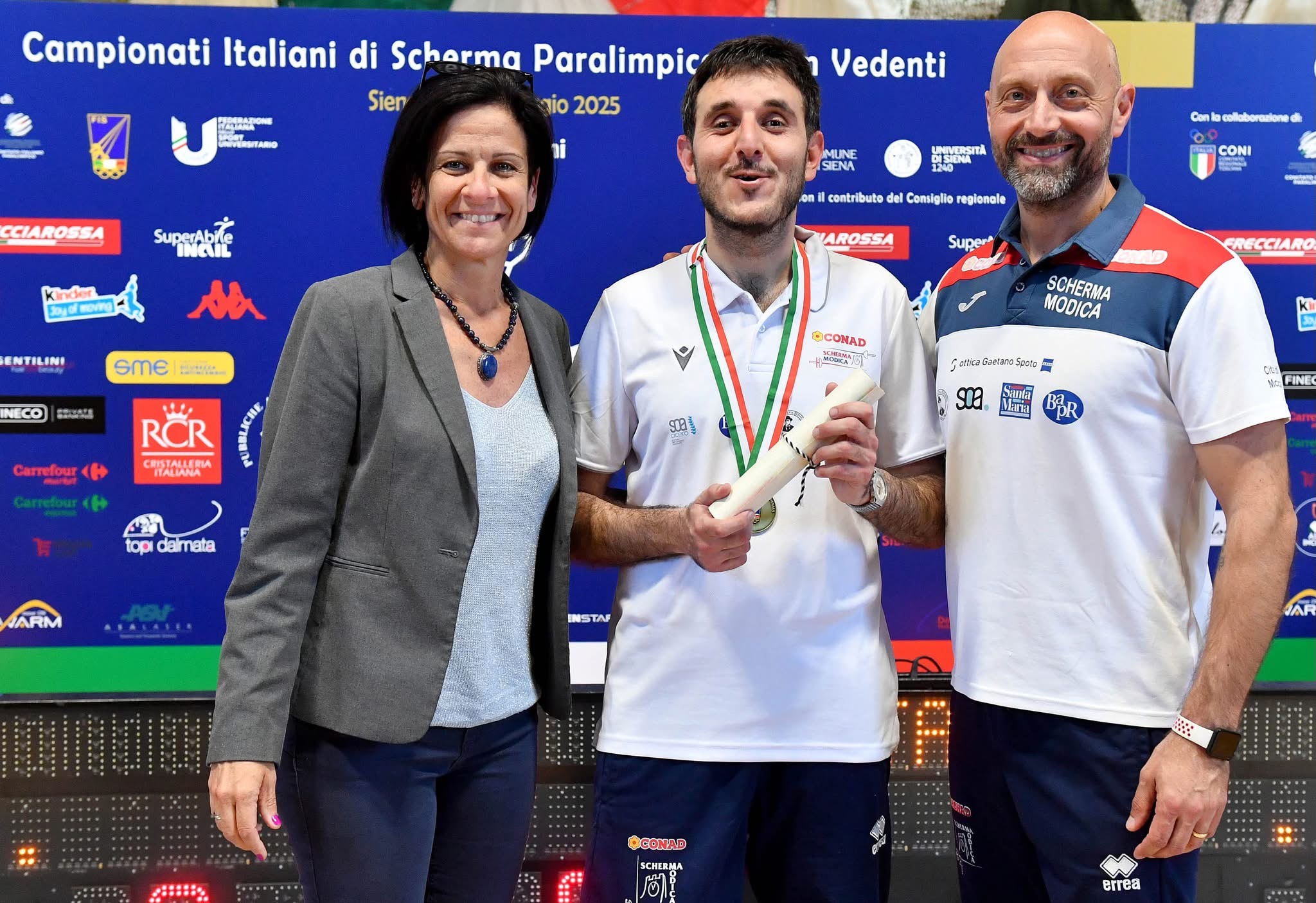 Siena – I Campionati Italiani Paralimpici tenutisi a Siena hanno visto nell’ultima giornata di gara la grande prova di Carmelo Gurrieri nella categoria spada maschile non vedenti, con la quale ha scalato il gradino più basso del podio conquistando la medaglia di bronzo. Proprio la categoria spada maschile non vedenti è stata caratterizzata dalla partecipazione più numerosa tra tutte le prove in programma, da un ottimo livello tecnico e da molti giovani che si sono dimostrati degni protagonisti del massimo palcoscenico tricolore. Sul podio accanto al rappresentante della Conad Scherma Modica ben tre atleti under20, dimostrazione dell’efficacia dell’attività promozionale svolta per la più giovane delle discipline paralimpiche. La cronaca della gara ha visto Carmelo riportare solo una sconfitta nel girone preliminare, per vincere poi l’accesso alla finale ad otto contro il piacentino Sinani 15/8. Ai quarti di finale altra vittoria con largo margine contro il pisano Pesaresi per 15/7; prima di cedere il passo al vicentino Frizzo in semifinale. Nella stessa gara stop agli ottavi di finale per Tommaso Ferraro e Antonio Carnazza 10º e 11º classificati. Presenti sulle pedane senesi per le categorie in carrozzina anche Maria Boscarino 7º classificata nella spada femminile Cat. B e Nicoletta Di Rosa 11º classificata nella spada Cat. A. Contemporaneamente a Caltagirone si svolgeva la II Prova Regionale del Trofeo Promozionale Esordienti e Prime Lame, riservato alle categorie non agonistiche under10, suddivisi tra armi in plastica per chi ha iniziato il proprio percorso nella scherma in questa stagione ed armi in metallo per chi è in pedana dalla scorsa stagione. Una vera e propria festa della scherma all’insegna del confronto con tutti i bambini delle altre società siciliane, con una formula di gara non agonistica, rispettando la finalità promozionale dell’evento. Per la Conad Scherma Modica ben 22 under10 presenti, rappresentanti il futuro sportivo della società modicana. Nella prova di fioretto presenti Gaia Falzone, Leonardo Galfo, Francesco Migliore, Giulia Gurrieri, Salvatore Sortino, Giorgio Sarta, Vittorio Parisi, Andrea Sena e Federico Elera; nella spada Rosa Corallo e Jacopo Tebaldi. Nella prova con attrezzatura in plastica Moreno Grizi, Francesco Lasagna, Edoardo Baglieri, Giovanni Celestre, Sofia Giunta, Ginevra Occhipinti, Amelia Roccuzzo, Mathias Boncori, Federico Ferini ed Antonio Iacono.