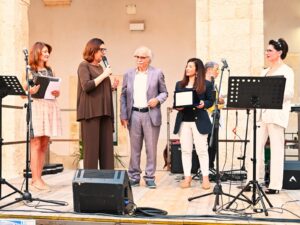 La serata è stata aperta dai saluti istituzionali del Sindaco di Modica, Maria Monisteri, e della presidente del consiglio comunale, Mariacristina Minardo, che hanno omaggiato il Presidente del Caffè Quasimodo, Domenico Pisana, con una targa commemorativa. , quale riconoscimento “al Professore Domenico Pisana, per il talento poetico che lo distingue, per il prezioso contributo letterario che arricchisce il panorama culturale della nostra città”. Abbiamo voluto esprimere il più sentito riconoscimento al prof. Domenico Pisana – ha detto il Sindaco Maria Monisteri – figura fondamentale nella nascita e nella crescita del Caffè Letterario Quasimodo, per il suo instancabile impegno culturale che da vent’anni arricchisce la nostra città con idee, passioni e creatività. Un gesto semplice ma significativo- ha dichiarato il Presidente del Consiglio comunale Mariacristina Minardo – per dimostrare al professore Pisana tutta la nostra stima sul piano personale nonché la nostra gratitudine a livello istituzionale per il prezioso contributo poetico e letterario che arricchisce la vita culturale della nostra città”. Le conduttrici dell’evento, Annalisa Cicero e Monica Iurato, hanno sapientemente guidato il pubblico attraverso le diverse fasi della performance, garantendo un fluire armonioso tra le varie esibizioni.