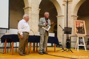 Accanto al suo impegno nel mondo dell’istruzione, il Maestro Carrubba coltivava una passione smisurata e un talento straordinario per la musica. Pianista e compositore, ha saputo unire la sua anima artistica a quella di educatore, arricchendo la vita di chi lo circondava. A lui avevamo dedicato, con l’amico Francesco Roccaro, un intero capitolo nel nostro libro “Musici della Contea di Modica” (nella foto Carrubba sul palco con Massimo Culmone, alla presentazione).