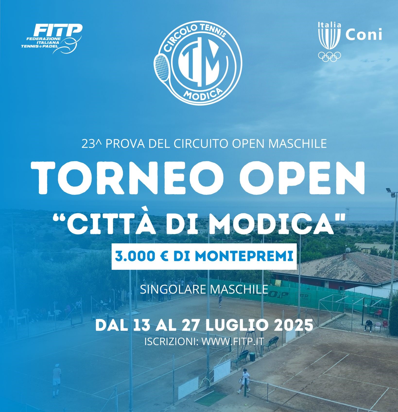 MODICA – La città barocca si prepara a vivere una settimana di grande sport con il 2° Torneo Open “Città di Modica”, in programma da oggi fino a domenica 27 luglio sui campi in terra rossa del Circolo Tennis Modica, in contrada Zappulla. Con un montepremi di 3.000 euro e un livello tecnico d’eccezione, l’evento si conferma uno degli appuntamenti tennistici più attesi della stagione estiva in Sicilia. Scenderanno in campo nomi di spicco del panorama nazionale e regionale, tra cui: