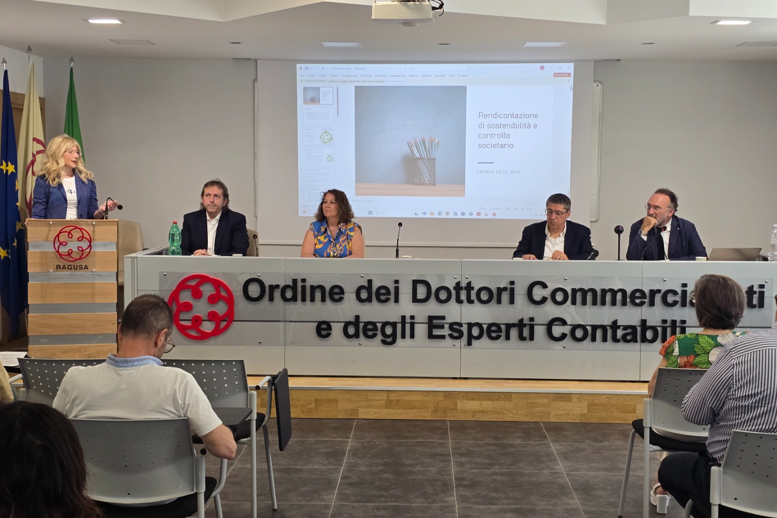 Ragusa – La sede dell’Ordine dei dottori commercialisti ed esperti contabili di Ragusa, sala Giovanni Di Blasi, ha ospitato un convegno di grande rilievo dedicato al tema della rendicontazione di sostenibilità, con focus sul nuovo D.Lgs. 125/2024, che sancisce il passaggio verso un sistema di reporting integrato e responsabile, coinvolgendo amministratori, sindaci e revisori in un percorso di trasparenza, accountability e governance sostenibile. L’iniziativa, fortemente voluta dal consiglio dell’Ordine e dal suo presidente, Maurizio Attinelli, rientra in un piano più ampio di impegno strutturale sui temi della transizione ecologica, sociale ed economica, che vede la categoria sempre più protagonista nell’accompagnamento delle imprese verso modelli gestionali orientati ai criteri Esg. Ha aperto i lavori il docente Pierluigi Catalfo, ordinario di Economia presso l’Università di Catania, che ha illustrato il percorso normativo che ha portato l’Europa e l’Italia alla definizione del quadro attuale in materia di sostenibilità d’impresa, sottolineando la funzione strategica del dottore commercialista e del revisore legale come figure chiave del cambiamento. È seguita la relazione di Carla Occhipinti, consigliera dell’Ordine dei commercialisti di Ragusa e delegata alla sostenibilità, che ha offerto un’analisi accurata della normativa sulla rendicontazione di sostenibilità, con particolare attenzione alla responsabilità degli amministratori, agli obblighi previsti dal decreto e ai profili di vigilanza e controllo. Giovanni Coviello, invece, ha condiviso esempi operativi per l’adozione della rendicontazione da parte di imprese obbligate e volontarie, mettendo in luce strumenti e benefici, nonché le opportunità derivanti da un’adozione anticipata e strategica. A chiudere Paolo Battaglia, membro della commissione nazionale di studio “Rendicontazione di sostenibilità” presso il Consiglio nazionale dei dottori commercialisti, ha proposto una riflessione applicativa sul ruolo del collegio sindacale, del revisore e degli amministratori, presentando casi pratici dal settore agroalimentare. L’intervento ha evidenziato come la collaborazione tra gli organi di controllo e la consulenza esperta possa costituire una leva competitiva decisiva nel percorso Esg. Il successo dell’iniziativa conferma l’impegno concreto dell’Ordine di Ragusa e del suo Consiglio nel promuovere formazione qualificata, consapevolezza professionale e una visione etica e tecnica del futuro delle imprese e del territorio.