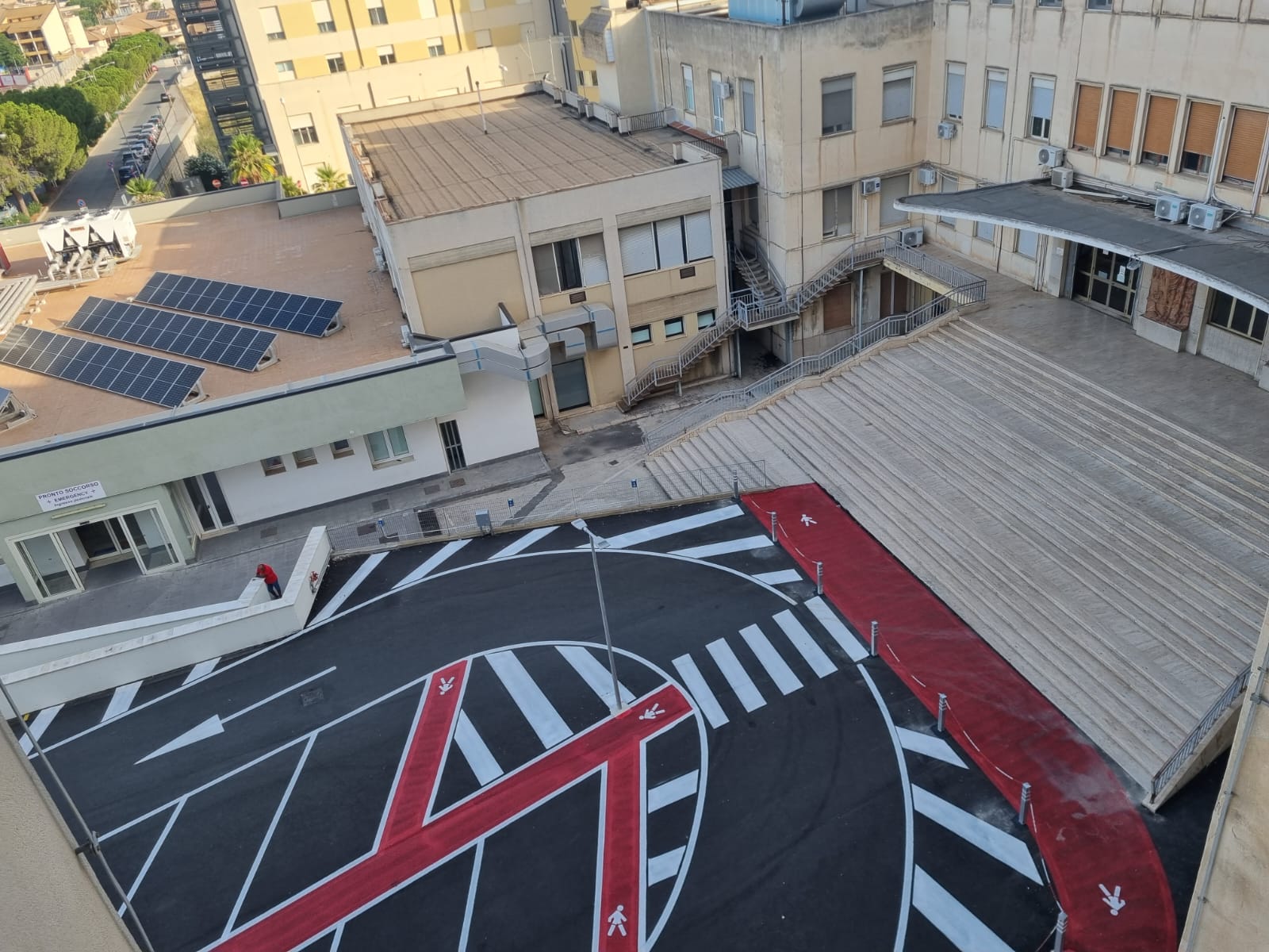 Finanziato interamente con fondi del bilancio aziendale e inserito nel piano investimenti 2024 dell’ASP di Ragusa, l’intervento ha previsto la completa sostituzione della pavimentazione, la riorganizzazione dei percorsi pedonali e carrabili, l’installazione di barriere automatiche per la regolazione degli accessi, la realizzazione di nuove aree di sosta – comprese quelle dedicate al pronto soccorso e ai mezzi di emergenza – e il rifacimento integrale dell’illuminazione esterna. È stato inoltre realizzato un nuovo locale per la portineria e la vigilanza, a supporto del controllo degli ingressi.