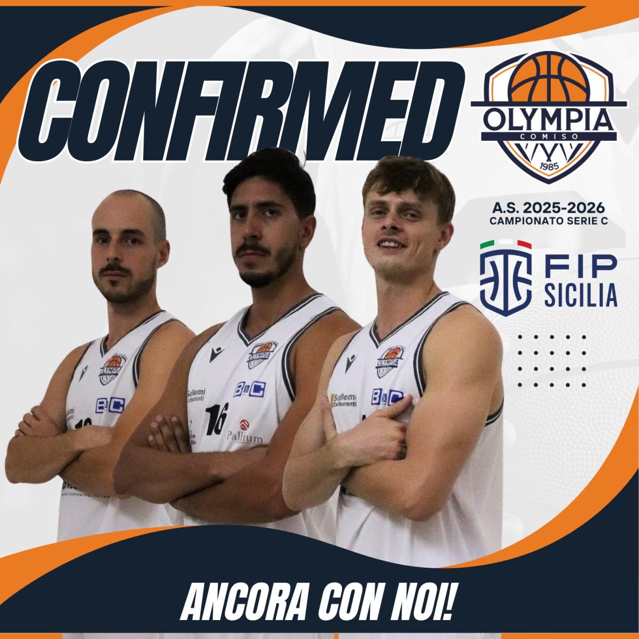 La società ringrazia i giocatori che nella stagione passata hanno giocato a Comiso per aver onorato fino alla fine i colori biancazzurri e augura loro le migliori fortune sportive, fermo restando che per l’Olympia rimane sempre un arrivederci. Un ringraziamento va anche al dirigente Giovanni Pace per il grandissimo lavoro svolto negli ultimi tre anni nel ruolo di direttore sportivo, contribuendo in maniera massiccia alla crescita dell’Olympia sia come prima squadra che come settore giovanile.
