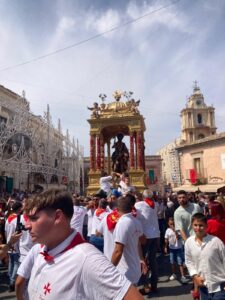 La prima celebrazione eucaristica sarà alle 6, presieduta dal parroco, don Innocenzo Mascali, seguita da quella delle 8 con don Salvatore Giaquinta. Alle 10, momento centrale della mattinata, la solenne celebrazione eucaristica sarà guidata dal vescovo di Ragusa, mons. Giuseppe La Placa. Alle 11 l’atteso rito della “Nisciuta”: il simulacro del santo patrono uscirà tra squilli di trombe, il lancio di una moltitudine di ‘nzaiarieddi e lo scoppio di fuochi d’artificio a cura della ditta Fuochi Srl di Chiarenza (Belpasso).
