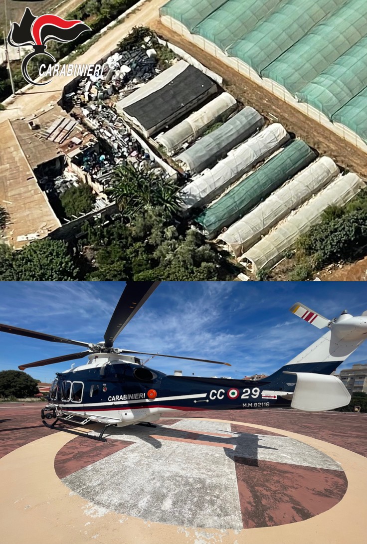Il sorvolo ha permesso di individuare un’area di circa 700 mq ubicata nelle campagne della frazione di Donnalucata, ove venivano depositati a cielo aperto rifiuti eterogenei pericolosi e non (materiale ferroso, eternit, plastica, batterie autoveicoli e vetro).