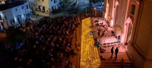 Pozzallo – Un’atmosfera sospesa tra cielo e terra ha avvolto ieri sera la scalinata della Chiesa Madre Madonna del Rosario, trasformata in un palcoscenico di luce e spiritualità per il tributo “La Cura dell’Eterno”, dedicato a Franco Battiato. Oltre 6.000 candele hanno disegnato un suggestivo scenario luminoso, esaltando l’architettura sacra e creando un colpo d’occhio di rara intensità. Il pubblico, accorso numeroso, ha vissuto un’esperienza collettiva di bellezza e contemplazione. Sul palco, il Coro Lirico Siciliano e il cantautore Mario Venuti – legato al maestro da un sodalizio umano e artistico – hanno intrecciato la potenza evocativa della musica corale con la profondità poetica delle composizioni battiatiane. Le esecuzioni, scandite da momenti di intensa partecipazione emotiva, hanno trasformato il concerto in un vero viaggio interiore. “La Cura dell’Eterno” non è stato soltanto un omaggio musicale, ma anche un atto d’amore collettivo verso uno degli artisti più visionari e innovativi della musica italiana. Un tributo che ha unito memoria e presente, lasciando negli spettatori la sensazione di aver assistito a qualcosa che va oltre la semplice esibizione: un’esperienza di comunità, arte e spiritualità. Pozzallo, illuminata dal fuoco tremolante delle candele e dalle note intramontabili di Battiato, ha celebrato così il genio di un maestro che continua a parlare al cuore e all’anima di intere generazioni.