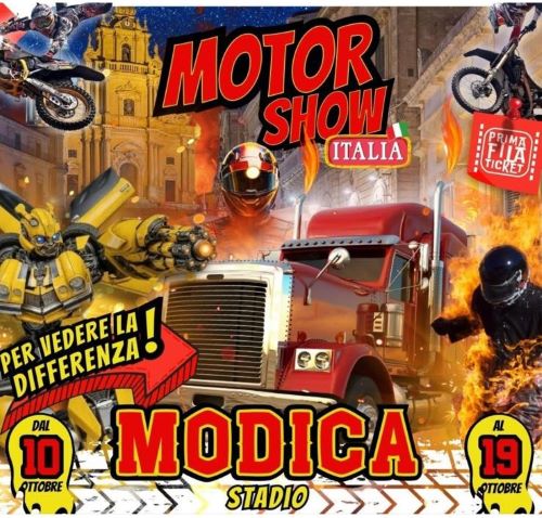 Modica si prepara ad accogliere uno degli eventi dedicato ai motori più spettacolari dell’anno: Motor Show Italia arriva in città, nella zona artigianale, in c.da Michelica, con “I Giganti dello Spettacolo”! Un appuntamento imperdibile per gli amanti dei motori, dell’adrenalina e dello spettacolo puro. Per 90 minuti mozzafiato, il pubblico vivrà un’esperienza carica di emozione e colpi di scena, grazie alle incredibili performance di piloti esperti e talentuosi, pronti a sfidare i limiti con acrobazie, derapate e manovre ad alta velocità. Dai monster truck alle moto freestyle, passando per auto da stunt e molto altro: sarà uno show adatto a tutta la famiglia, capace di stupire grandi e piccoli. Preparatevi: i giganti sono arrivati!