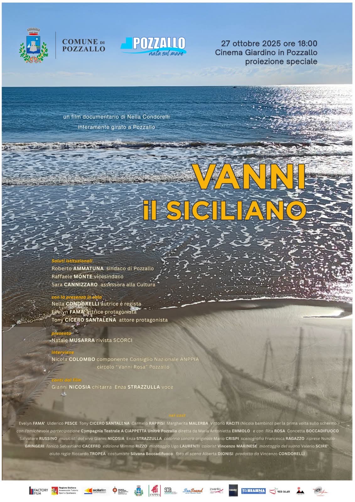 Successo di pubblico e di critica per la prima “pozzallese” di “Vanni il siciliano” il documentario presentato al cine teatro “Giardino”, a cura della regista Nella Condorelli. Presente in sala l’autore del libro da cui è stato estratto il documentario Nicola Colombo (titolo del libro “Il ragazzo inquieto”) così come in sala erano presenti quasi tutti gli attori che hanno preso parte al lungometraggio.